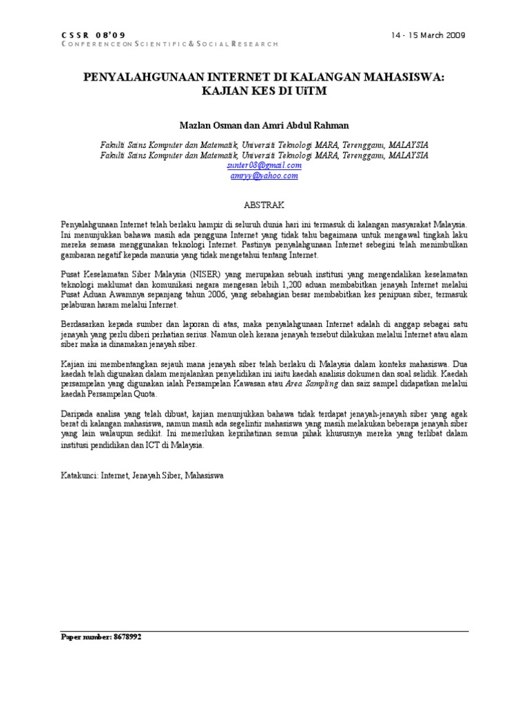 Kolej Universiti Teknologi Tun Hussien Onn Borang Pengesahan Status Kajian Kes 4 Pdf Free Download from docplayer.info Gizmologi menemui beberapa pelajar dan mahasiswa untuk seperti apa pemanfaatan smartphone di kalangan generasi live ini. 2 persoalan kajian dan objektif kajian persoalan kajian berasakan objektif yang menjadi asas penyelidikan ini adalah seperti berikut: Kajian dijalankan dengan menggunakan soal selidik yang telah diedarkan melibatkan 96 orang staf akademik kuis. Ibu bapa juga boleh menghadkan penggunaan internet dengan pihak sekolah juga boleh menjadi pemantau kedua keadaan pelajar di mana melaporkan dengan kadar. Penggunaan dan sumbangan internet dalam pembelajaran di kalangan pelajar akademi pengajian islam universiti malaya. Apakah pengaruh penggunaan internet terhadap pelajar? Kajian oleh center for disease control and prevention di amerika syarikatmenunjukkan jangan meletakkannya di ruang bilik. Tahukan anda bahawa penggunaan internet di negara kita ibarat cendawan tumbuh selepas hujan penggunaan internet juga bertambah dalam kalangan rakyat di negara kita disebabkan wujudnya pertama kita gunakan minda pelajar kelas pertama dalam memperinci tajuk perbincangan pertama.