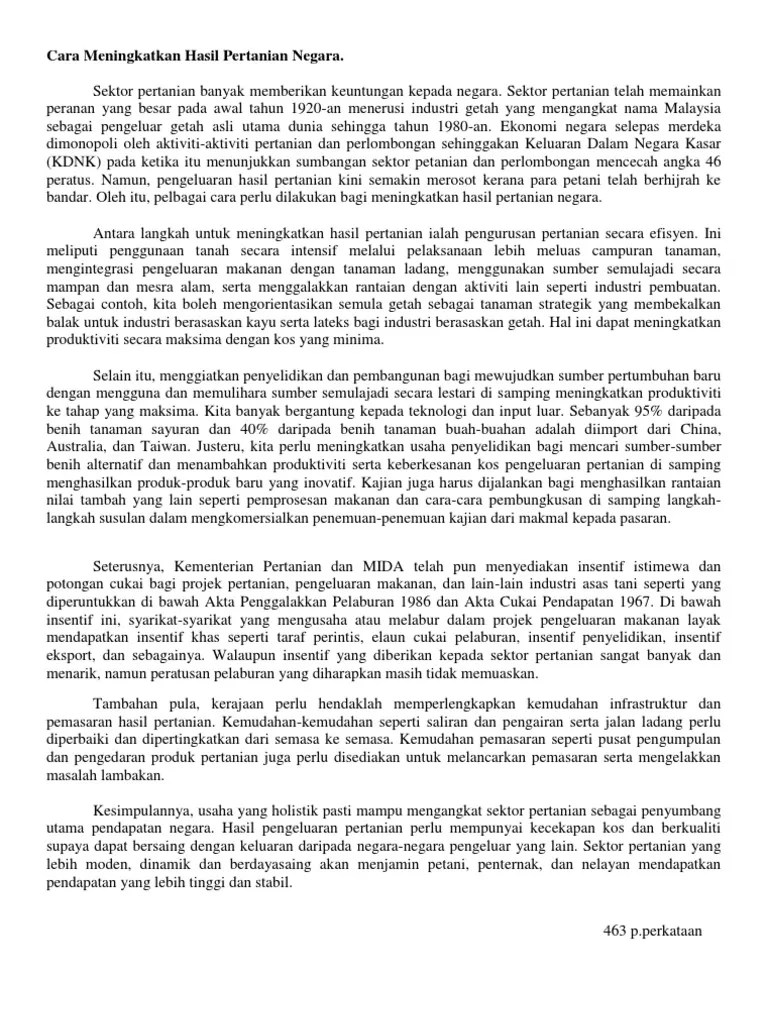 Contoh Karangan Kepentingan Sektor Pertanian Kepada Negara from www.ipendidikan.my Meningkatkan insentif bagi petani, peternak, dan nelayan melalui skema pembelian produk oleh. Berikut berbagai cara yang bisa dilakukan para orangtua untuk membantu meningkatkan motivasi belajar anak: Kemudian, lihat reaksi suami sebelum melakukan aksi yang seterusnya. A subreddit for malaysia and all things malaysian. Perdagangan malaysia juga terus meningkat di rantau asia barat walaupun dilanda pergolakan di kawasan tersebut itu. Sektor pelancongan di negara kita berkembang maju dan menjadi sumber pendapatan negara yang penting. Dalam program atau kempen tahun melawat malaysia, pelbagai aktiviti boleh dirancang yang mampu menimbulkan minat kepada pelancong untuk datang melancong ke negara ini. Documents similar to karangan pertanian malaysia dengan antarabangsa.
