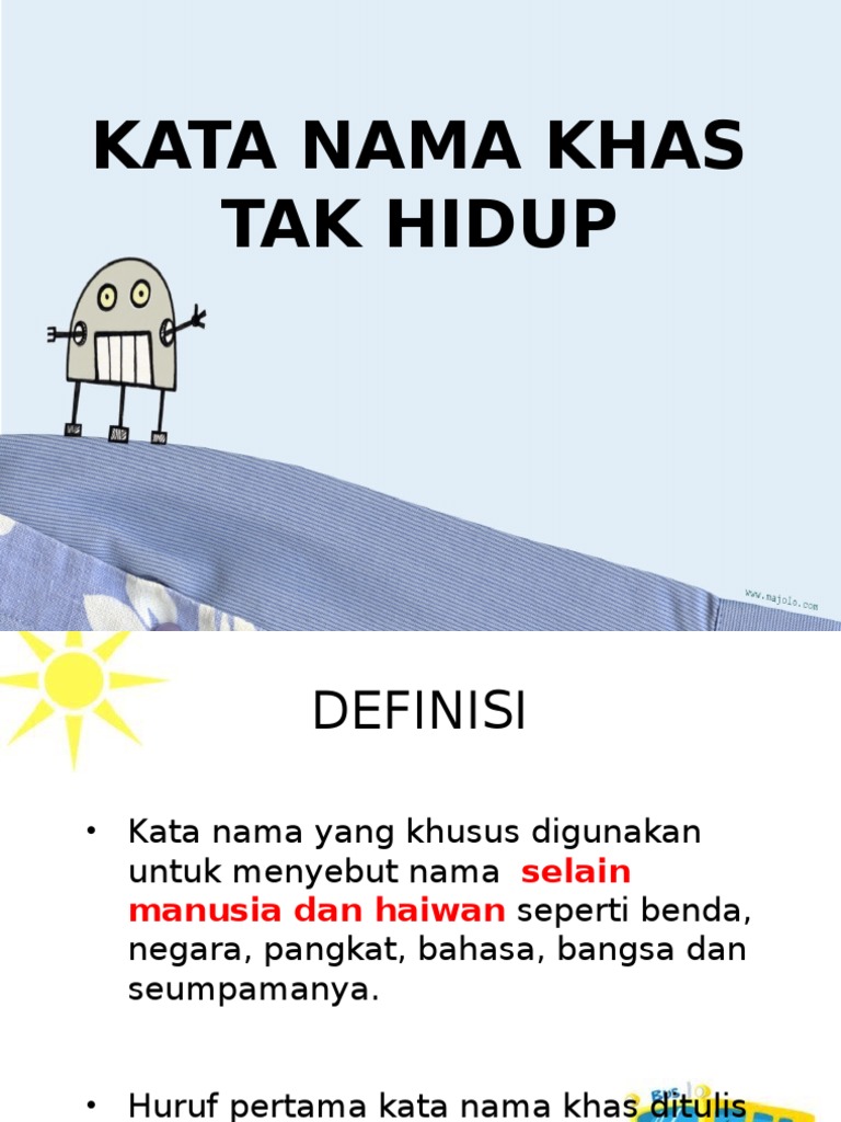 Kata Nama Khas Tak Hidup - Aina binti ali, sang rangga, taman melawati, samsung.. Dalam pelajaran kali ini, kita akan belajar mengenai kata nama khas tak hidup. Start studying kata nama am tak hidup bukan institusi abstrak. March 1, 2016, 2:50 a.m. Once your powtoon is ready to be downloaded we'll send you an email. Kata nama khas merujuk kepada nama ruang, binatang, tempat dan benda secara khusus.